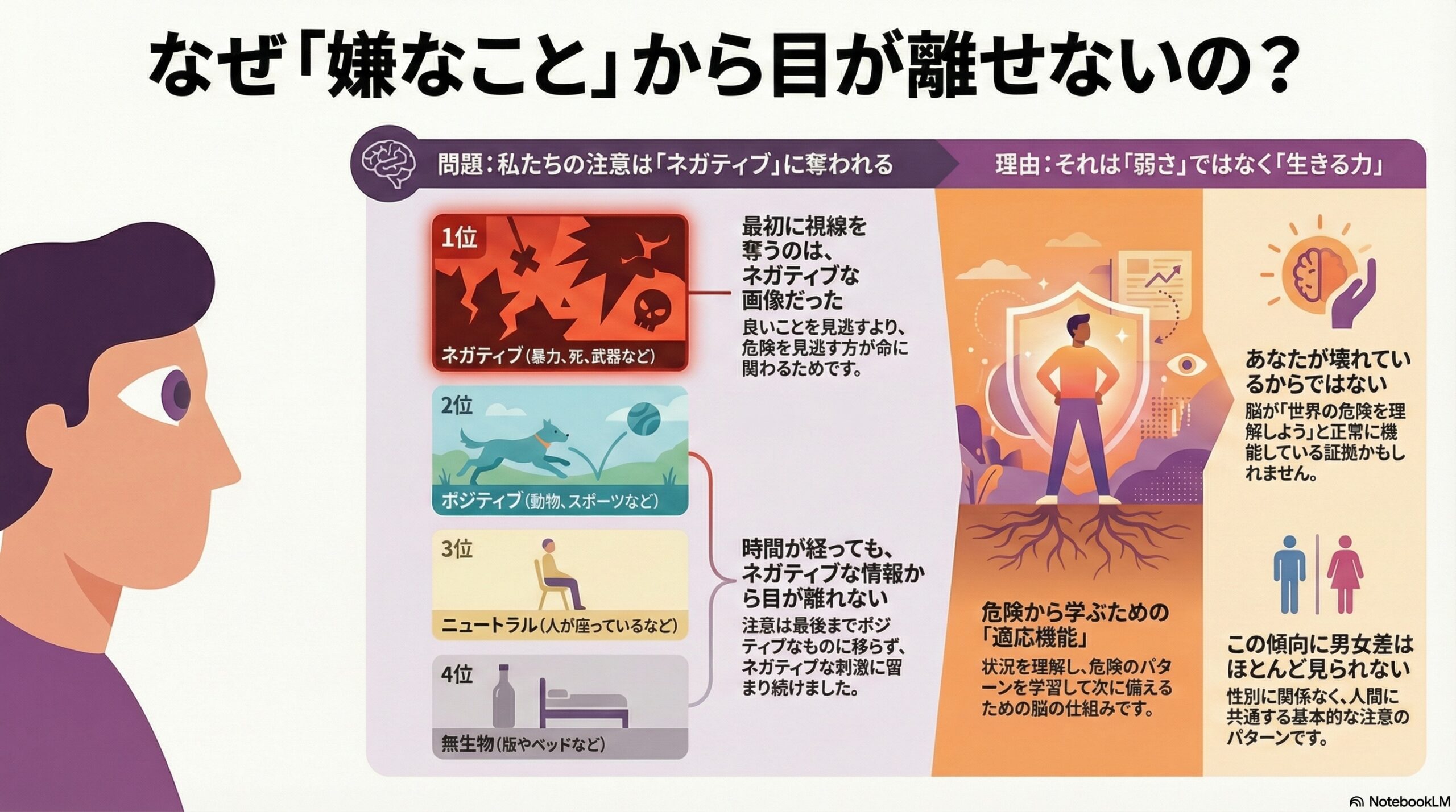 この現象は、単なる好奇心ではなく、人間の注意システムに組み込まれた特徴かもしれません。