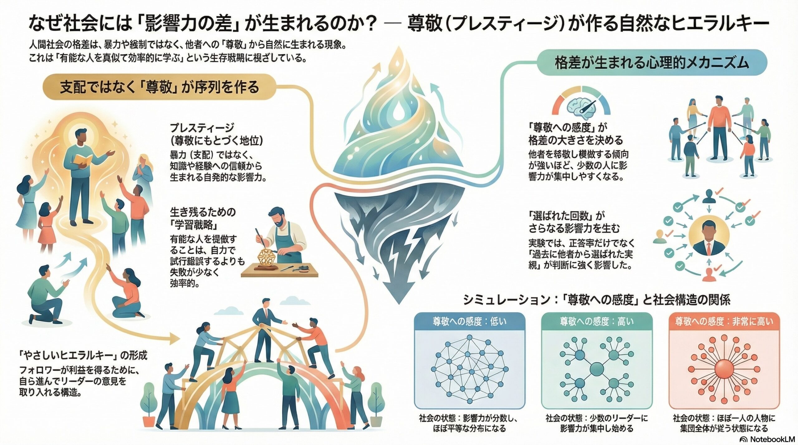 - 人は尊敬される人の意見を参考にする「プレスティージ心理」で、平等だけではなく序列が生まれうる。