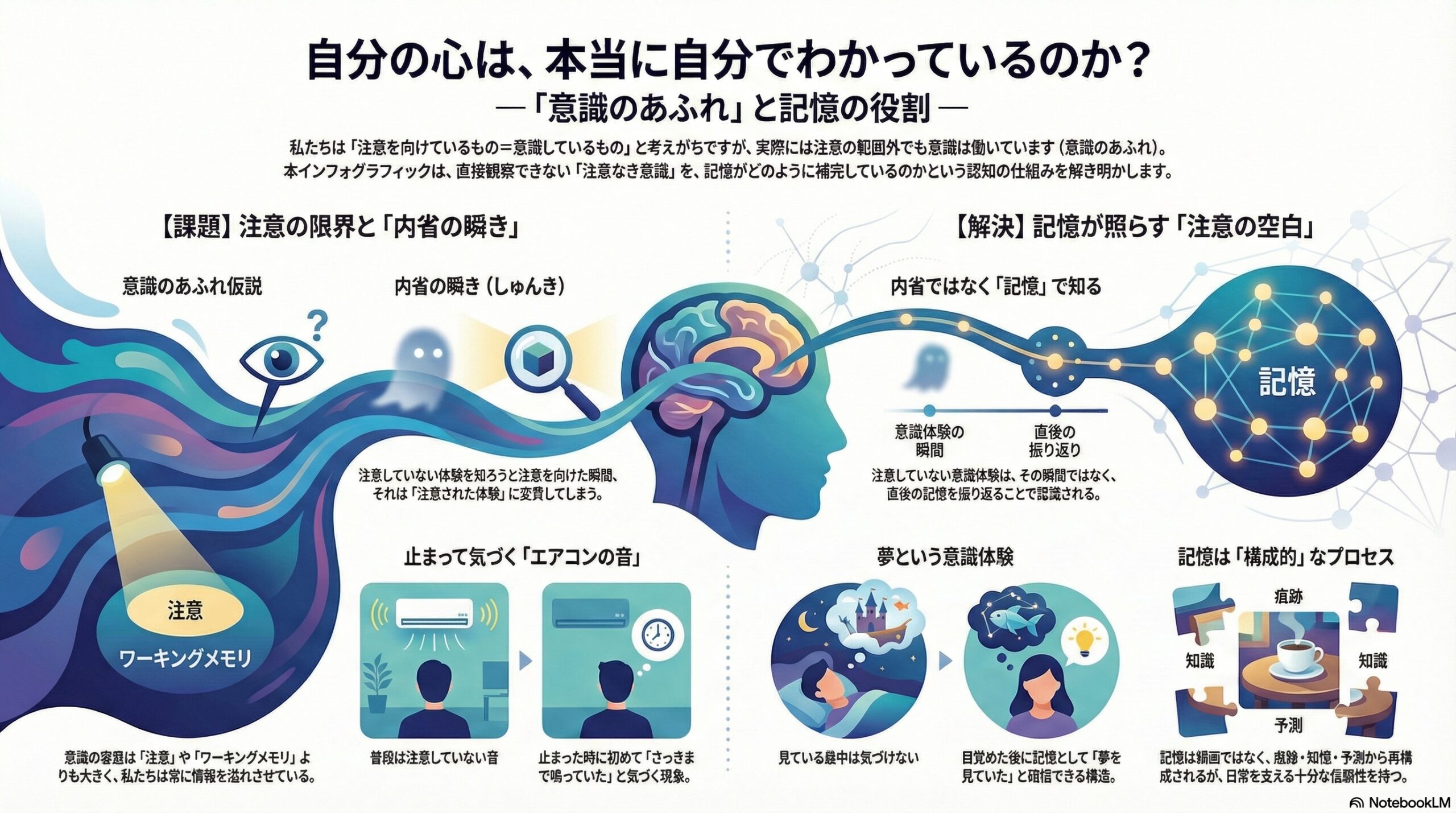 注意していない意識体験は、内省ではなく「記憶」によって知られる。