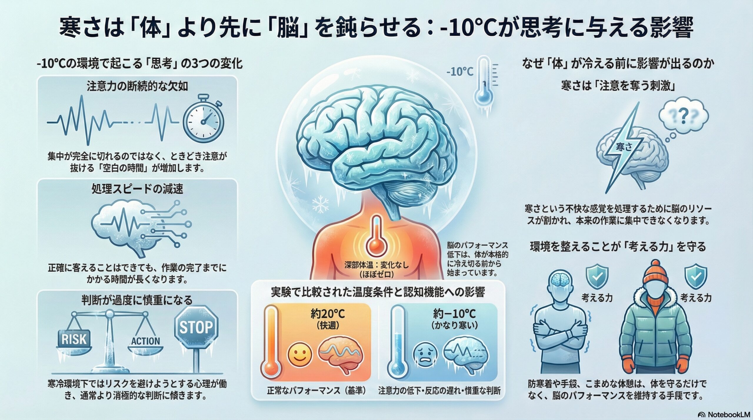 寒さは、体の芯が冷える前から、すでに考える力に影響を与えている可能性があります。