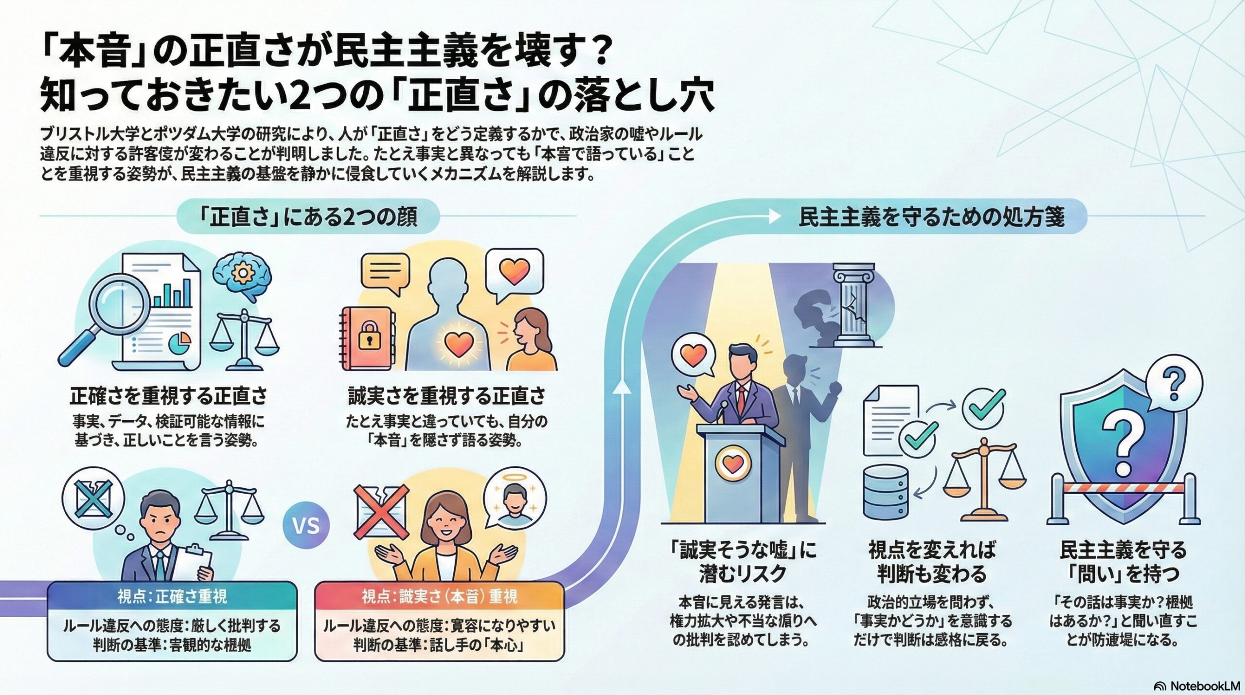 私たちが何を「正直だ」と感じるのか、その感覚そのものが、社会の形を静かに左右していることを示しています。