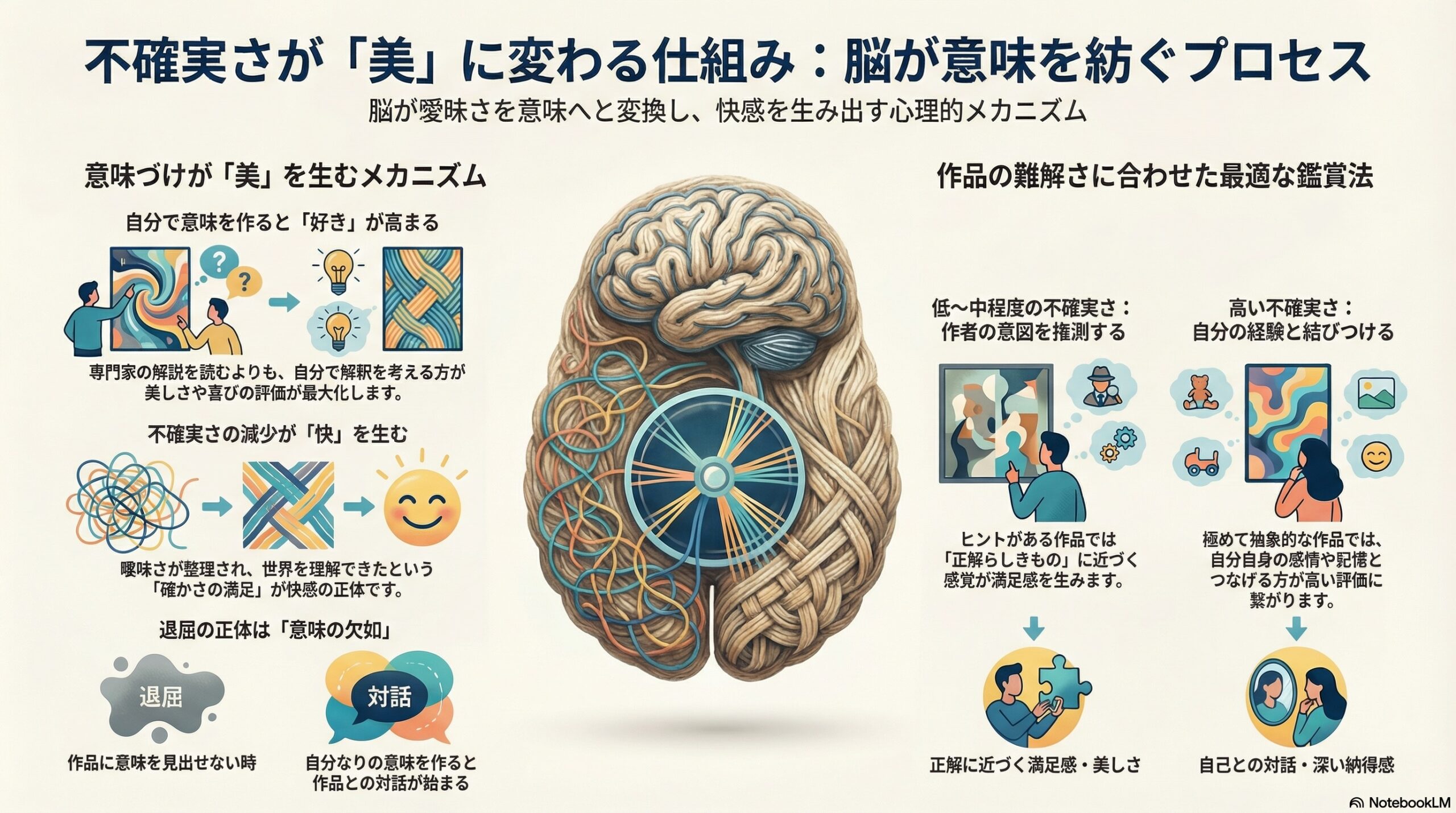 - 不確実さは敵ではなく、意味づけの動きが退屈を減らし体験を深める入口になる。