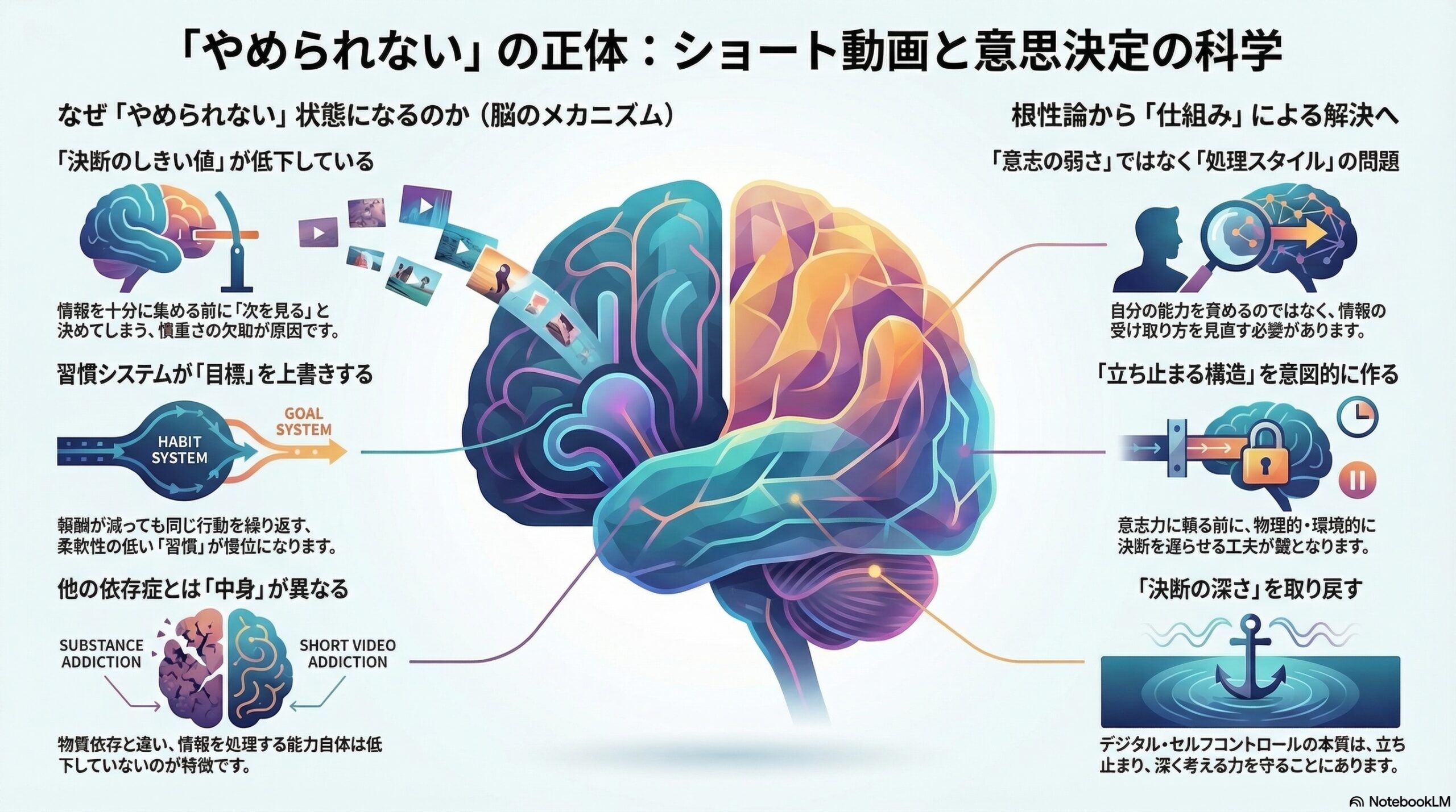 とくにショート動画のような短時間コンテンツは、その決断を何十回、何百回と繰り返させます。