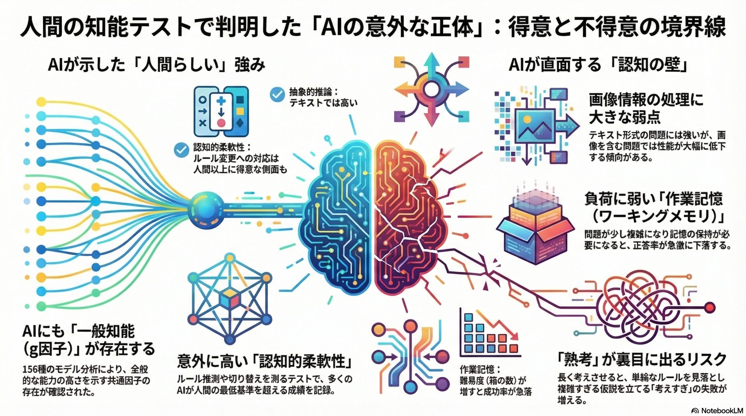 - 共通の知能のような性質がある一方で、長く考えすぎると逆効果になることも分かりました。