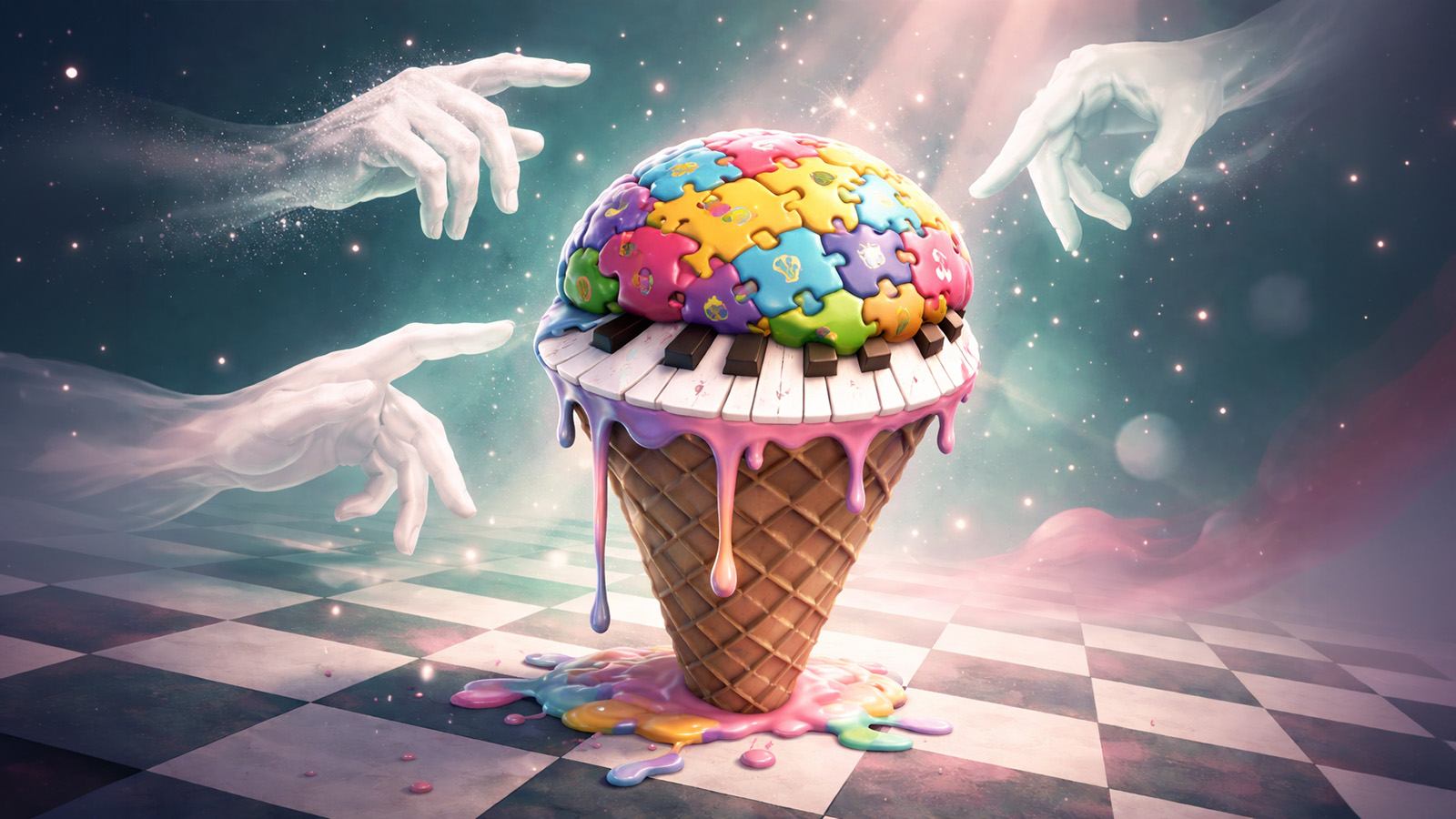 演奏の出来に応じて手の透明度が変化する