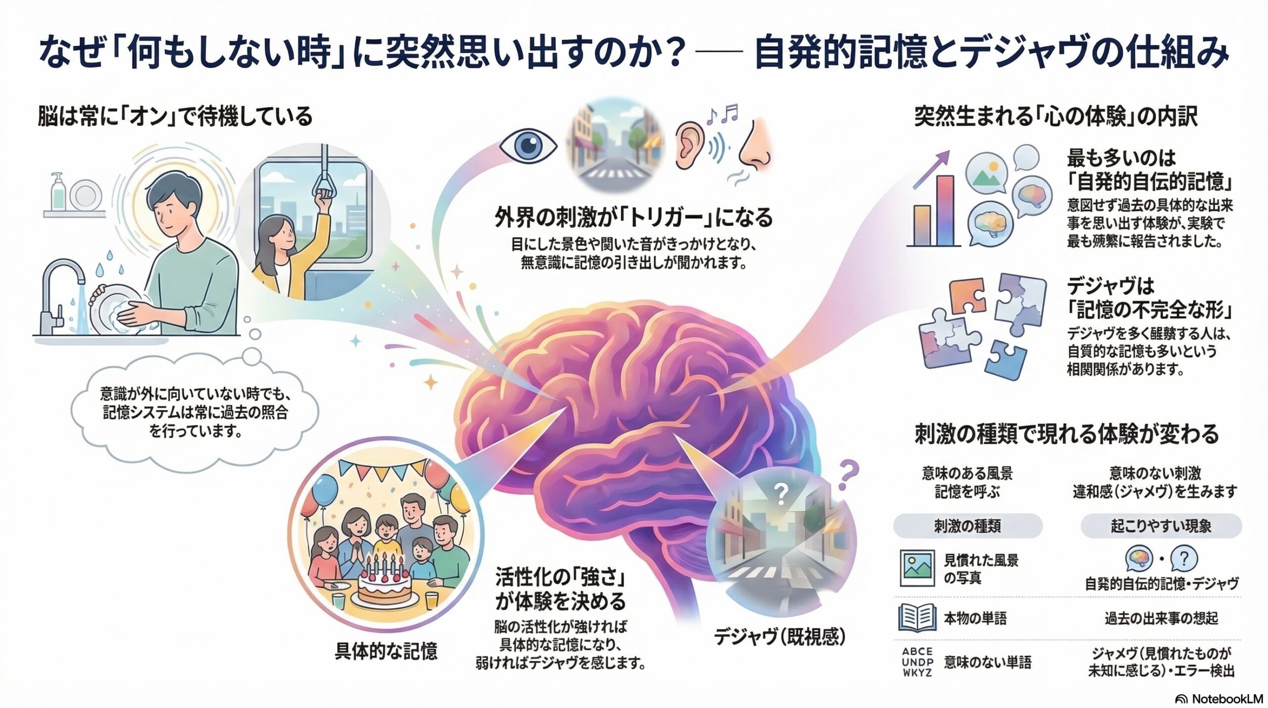心理学ではこの現象を 自発的自伝的記憶(Involuntary Autobiographical Memory) と呼びます。