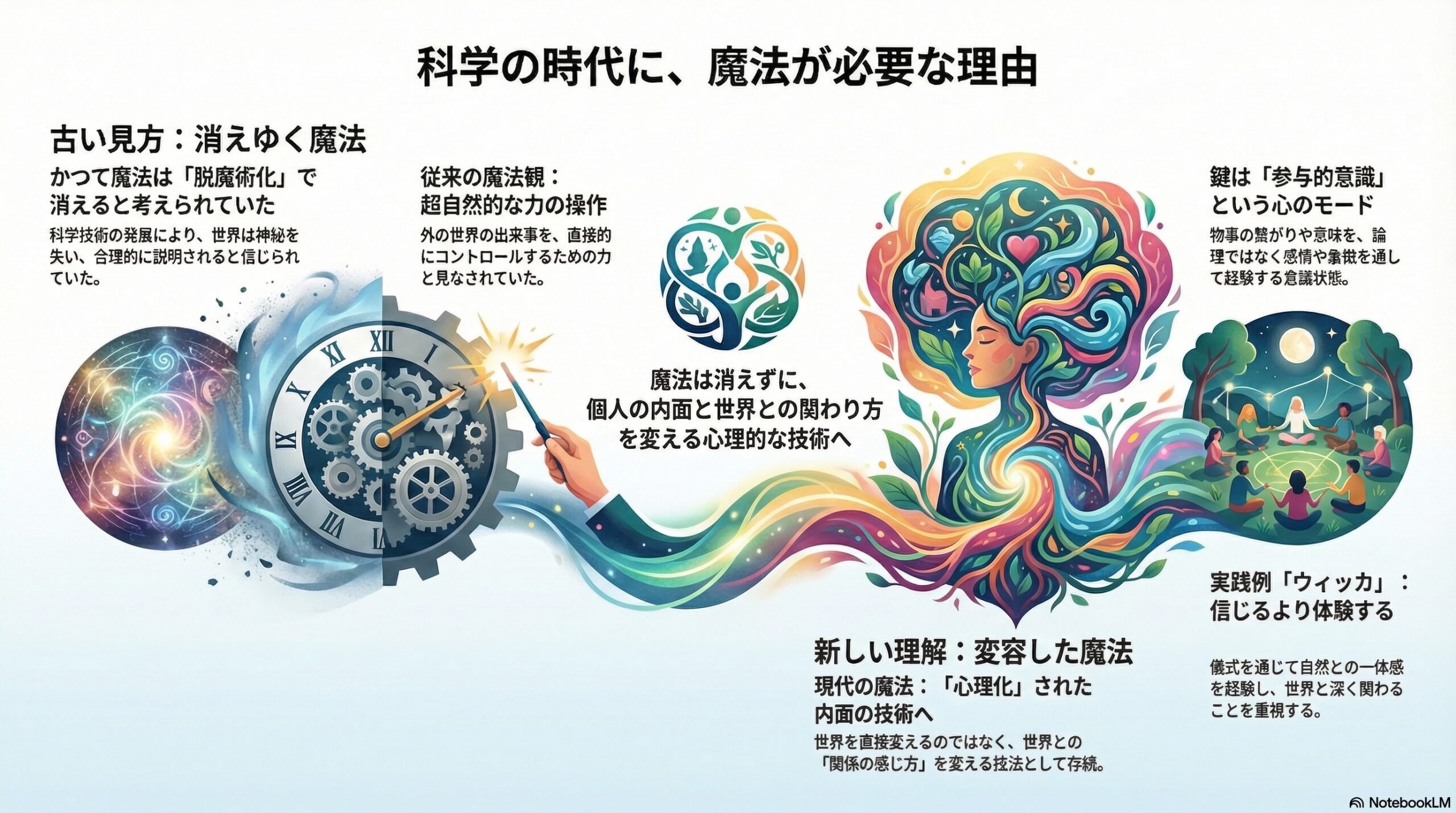 - 現代では魔法は消えず、占いなどが身近な形で生き残っている。