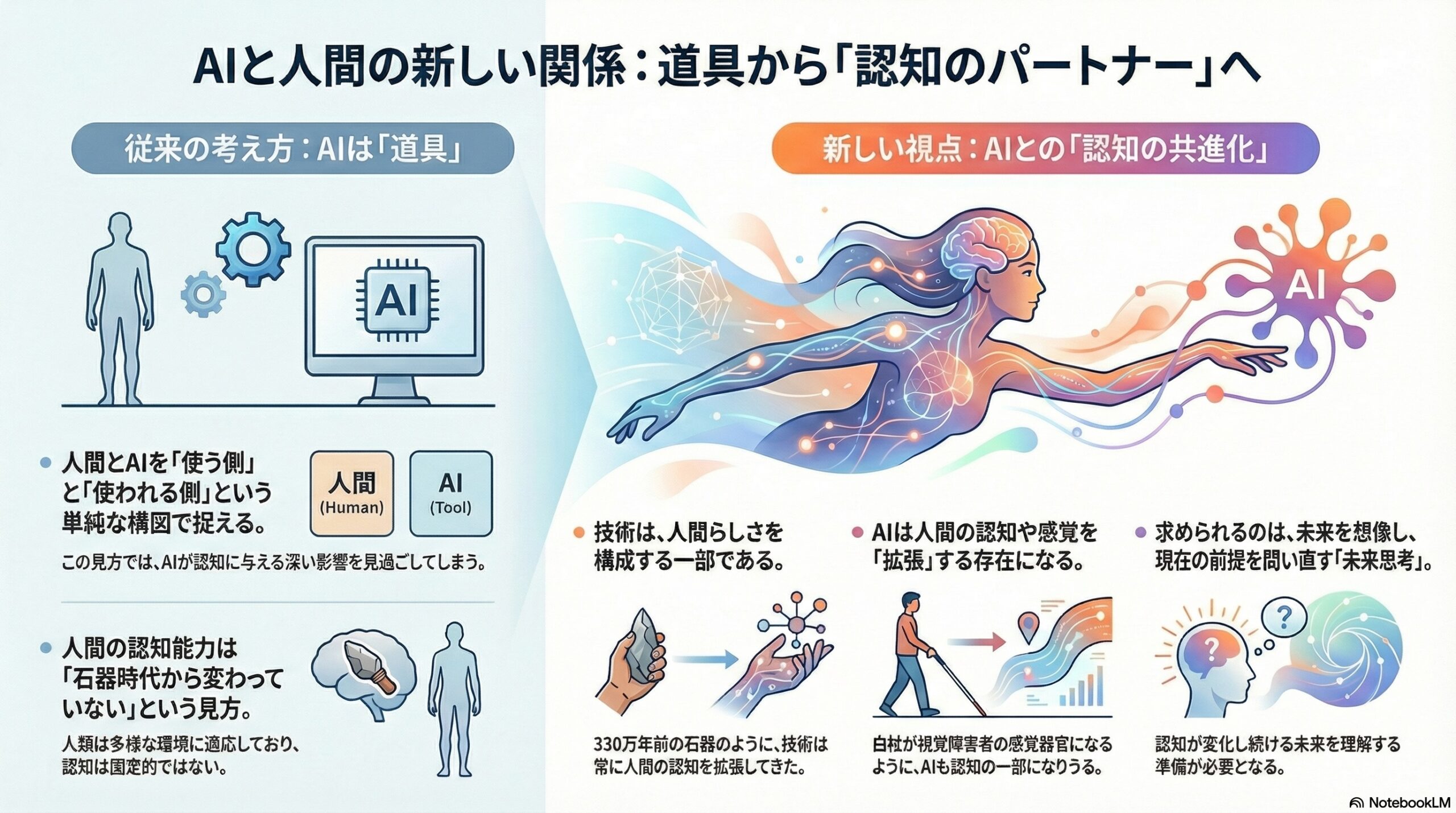 AIと人間の認知の共進化が進む未来では、いま当然だと考えている理解の枠組みが通用しなくなるかもしれません。